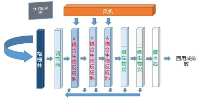 1、格栅井:预处理后的生活污水自流进入格栅井,利用格网可将水中的大渣物去除,以免阻塞后续的水泵和管道,渣物由人工定时清除。